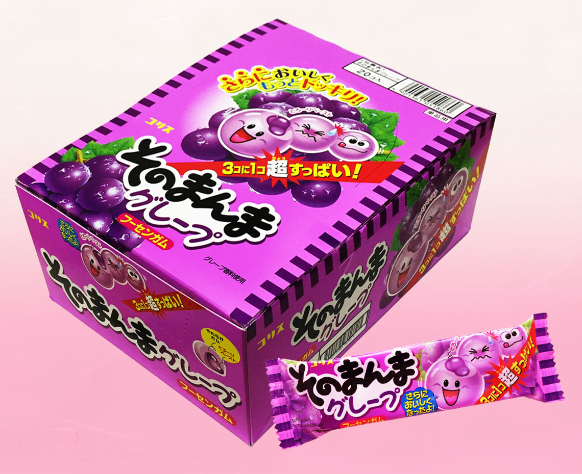 やわらかいソーダガムの中にとろーりペーストが入った、フレッシュなおいしさあふれるグレープガムです