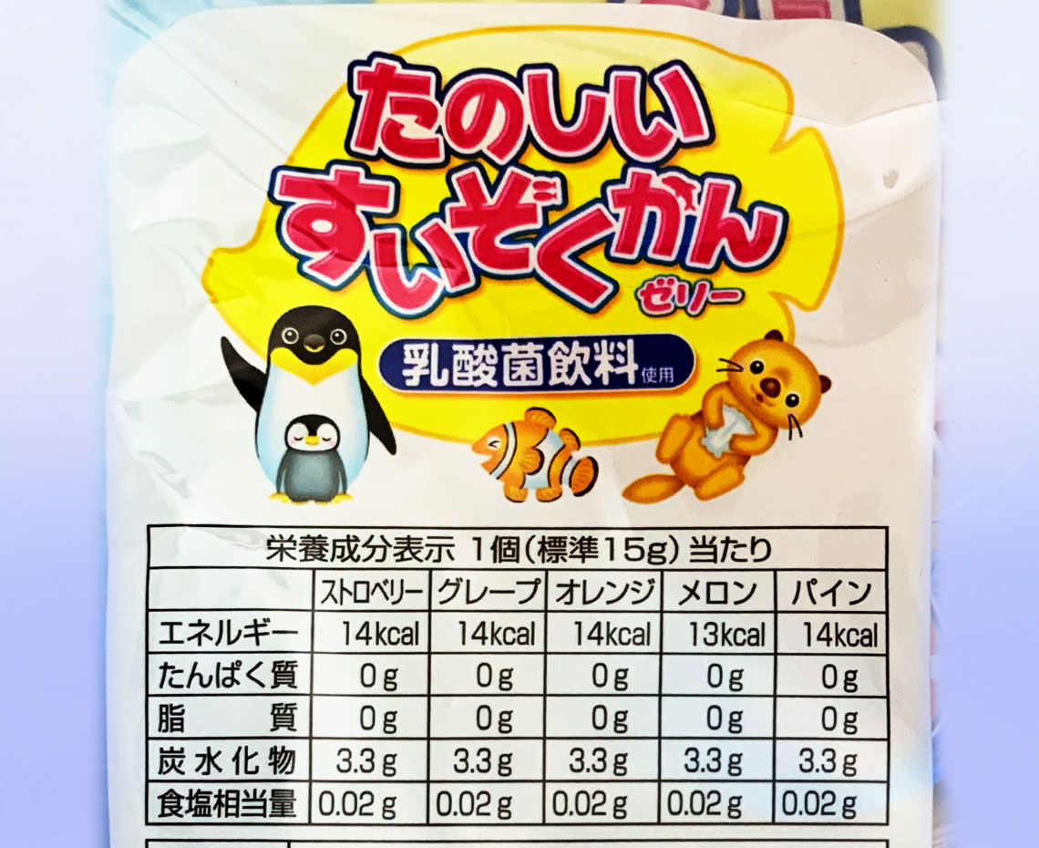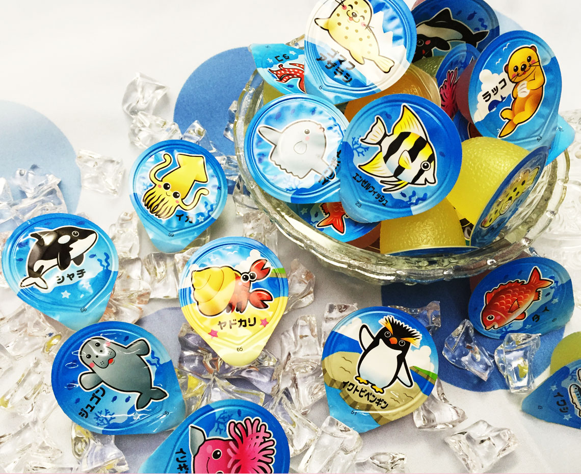 海のお魚や動物が覚えられる、いろいろなフルーツ味が広がる美味しさのひとくちゼリーです。